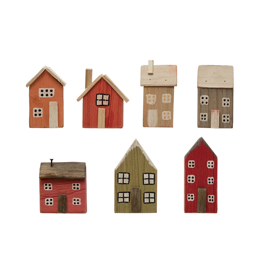 4-1/4"H - 5-3/4"H Hand-Painted 100% Paulownia Wood Houses, Available in 6 colors: