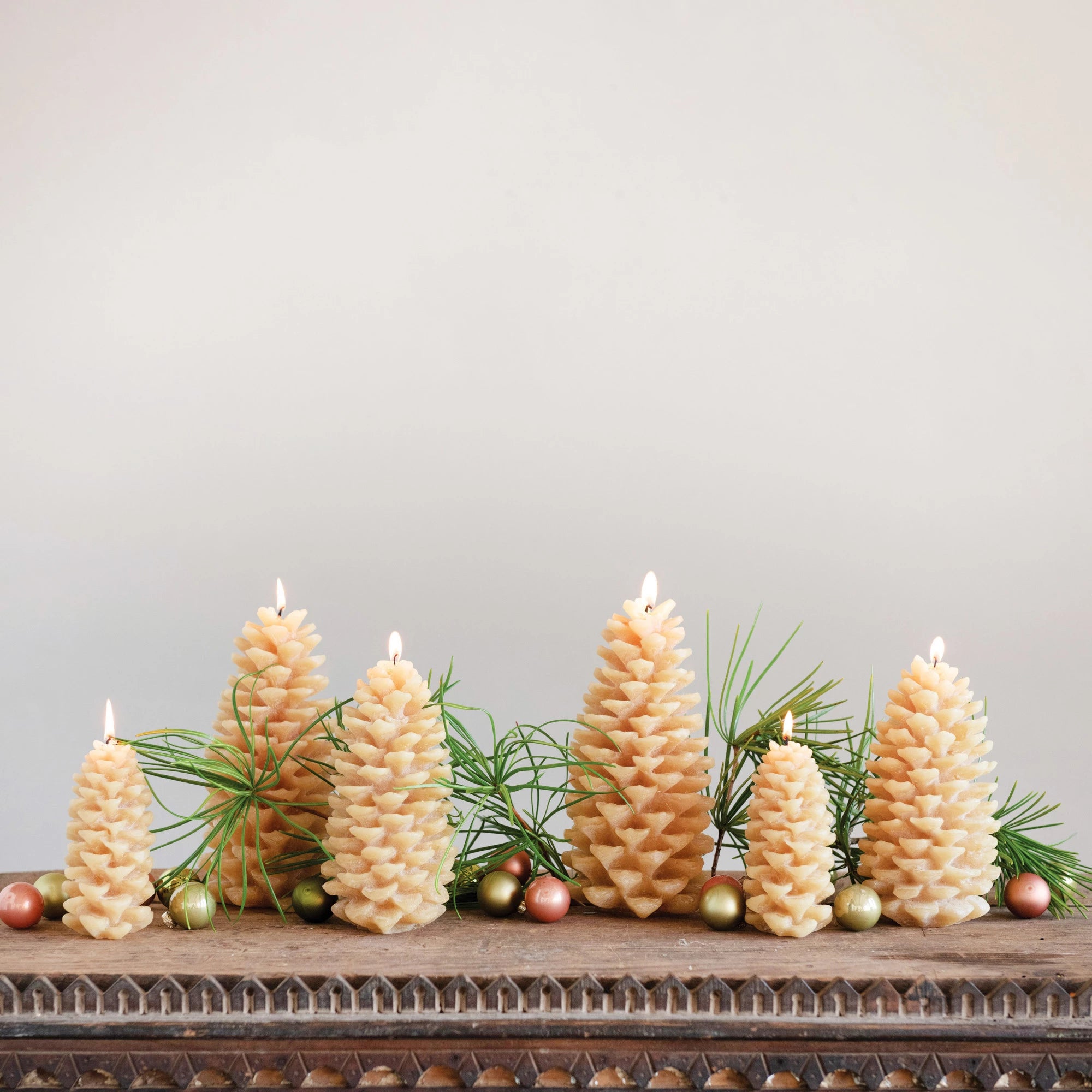 4" Round x 8"H Unscented Pinecone Shaped Candle